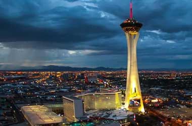 The traditional definition of the Las Vegas Strip excludes the Stratosphere, it is often included in travel guides as a Strip attraction. It’s the only Strip hotel that’s actually located within the City of Las Vegas. The restaurant at the top is conveniently named Top of the World, and there are two observation decks and four thrill rides: Big Shot, Insanity, SkyJump Las Vegas and X-Scream. Short description of one of the rides – the riders dangle over the edge of the tower and then spin in a circular pattern at speed of approximately forty miles per hour. As far as casino games go, Stratosphere has an 80,000 square foot (7,400 m2) casino that inherited some unusual variations on casino games from its predecessor Vegas World. There are 50 table games and 1,500 slot machines. This is actually one of the smaller top casinos in Vegas.